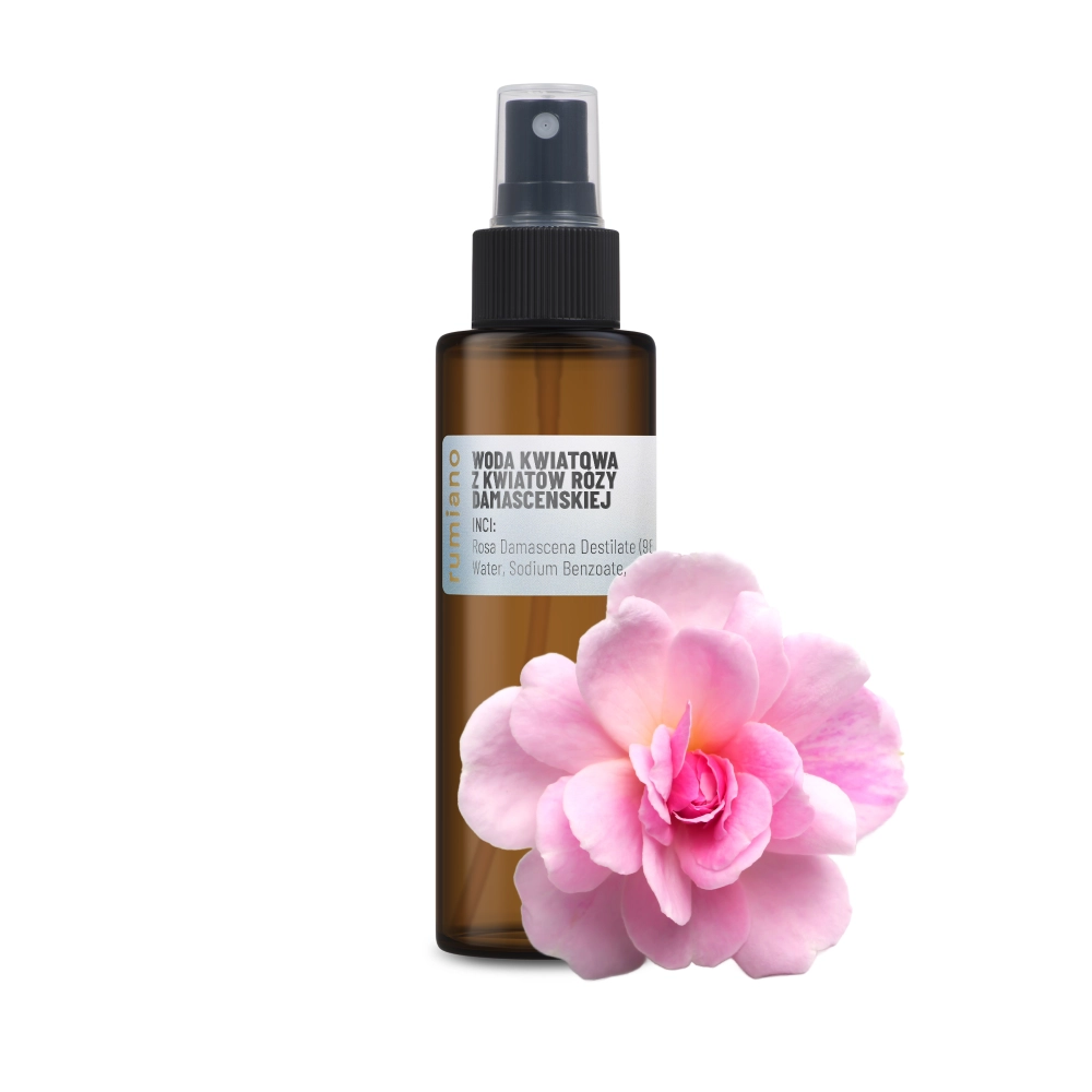 INCI: Organic Rosa Damascena Destilate (98%), Water, Sodium Benzoate, Potasium Sorbate, Citric Acid