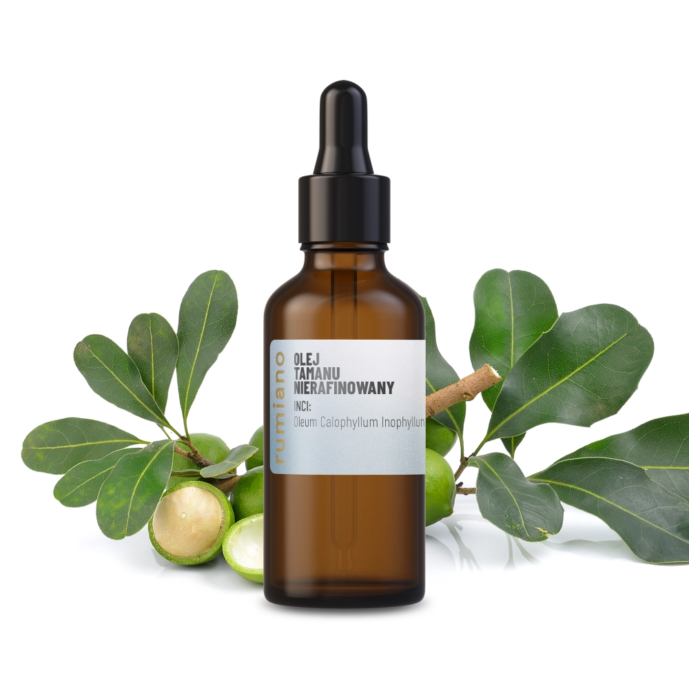 BIO-Tamanu-Öl nicht raffiniert wird aus den Früchten des in Polynesien beheimateten Tamanu-Baumes gewonnen. Es gehört zu den Ölen mit hohem Gehalt an ungesättigten Fettsäuren (essentielle Fettsäuren, EFA), die für gesunde und entsprechend befeuchtete Haut unabdingbar sind. Es enthält Ölsäure (ca. 49%), Linolsäure (ca. 21%), Palmitinsäure (ca. 14%), Stearinsäure (ca. 12-13%), Linolensäure (ca. 0,28%). Tamanu-Öl beschleunigt Wundheilung, wirkt entzündungshemmend, lindert Schmerzen, tötet Bakterien und Viren, schützt vor freien Radikalen, spendet Feuchtigkeit, ernährt und regeneriert. Hilft gegen Insektenstiche, Erfrierungen, Hautmazeration, entzündliche Narben. Unterstützt Wundheilung, fördert Immunkräfte. Beugt Bildung von Mitessern vor.