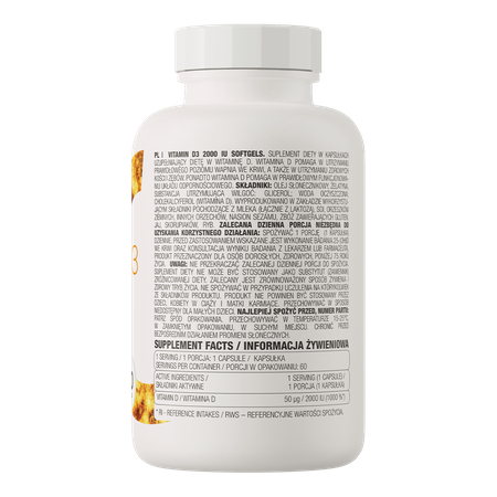 OstroVit Vitamin D3 2000 IU ist ein hochwertiges Nahrungsergänzungsmittel, das Vitamin D3 liefert. Das Produkt ist in Form von leicht schluckbaren Kapseln erhältlich und wurde speziell für Personen entwickelt, die ihren täglichen Bedarf an diesem wichtigen Mikronährstoff decken möchten.