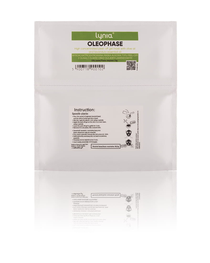 OLEOFAZA to wysoko skoncentrowana algowa maska aktywna typu peel-off, która w swoim składzie posiada aż 60% olejów. Dzięki właściwościom antyoksydacyjnym oliwa z oliwek chroni przed szkodliwym działaniem wolnych rodników i spowalnia procesy starzenia się skóry, głównie dzięki polifenolom i tokoferolom. Dodatkowo odżywia skórę poprzez regulowanie naturalnego nawodnienia naskórka.